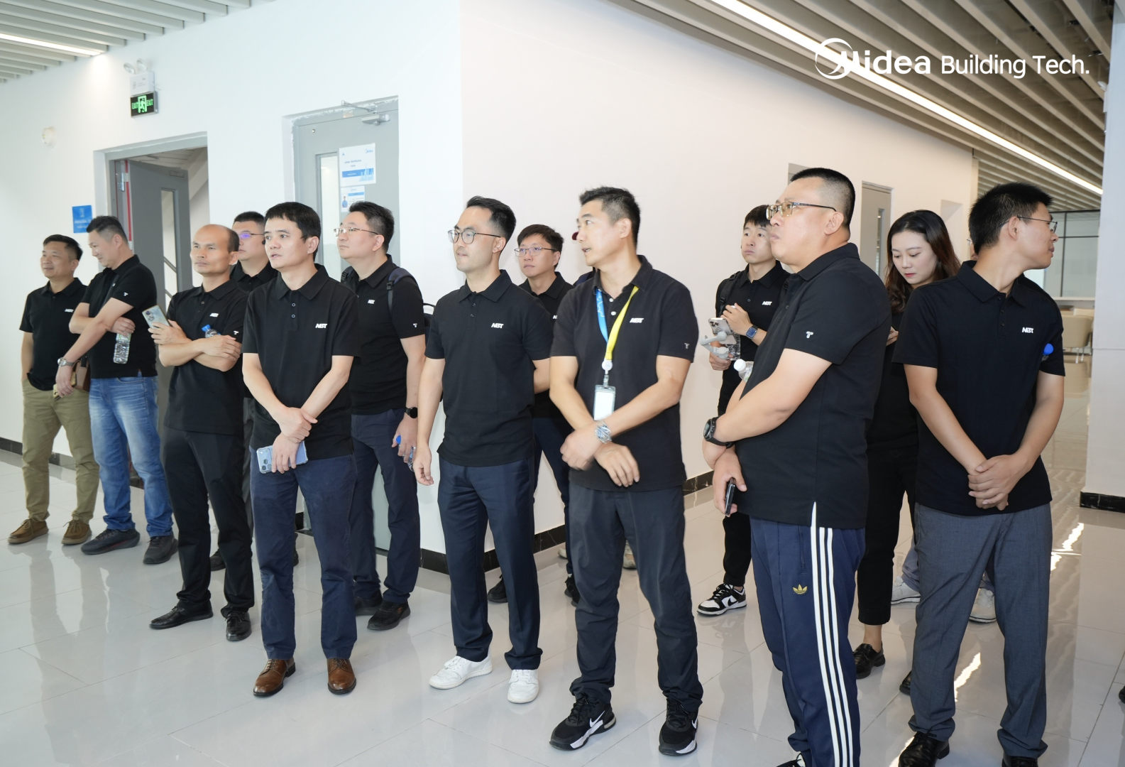 The site visit began at the Midea HVAC Solutions Showroom, where guests were introduced to the brand’s full suite of building technology solutions — spanning VRF systems, chiller systems, controllers, and elevator systems. The showroom demonstrated Midea Building Technologies’ strong capabilities and comprehensive product portfolio in the field of smart buildings.